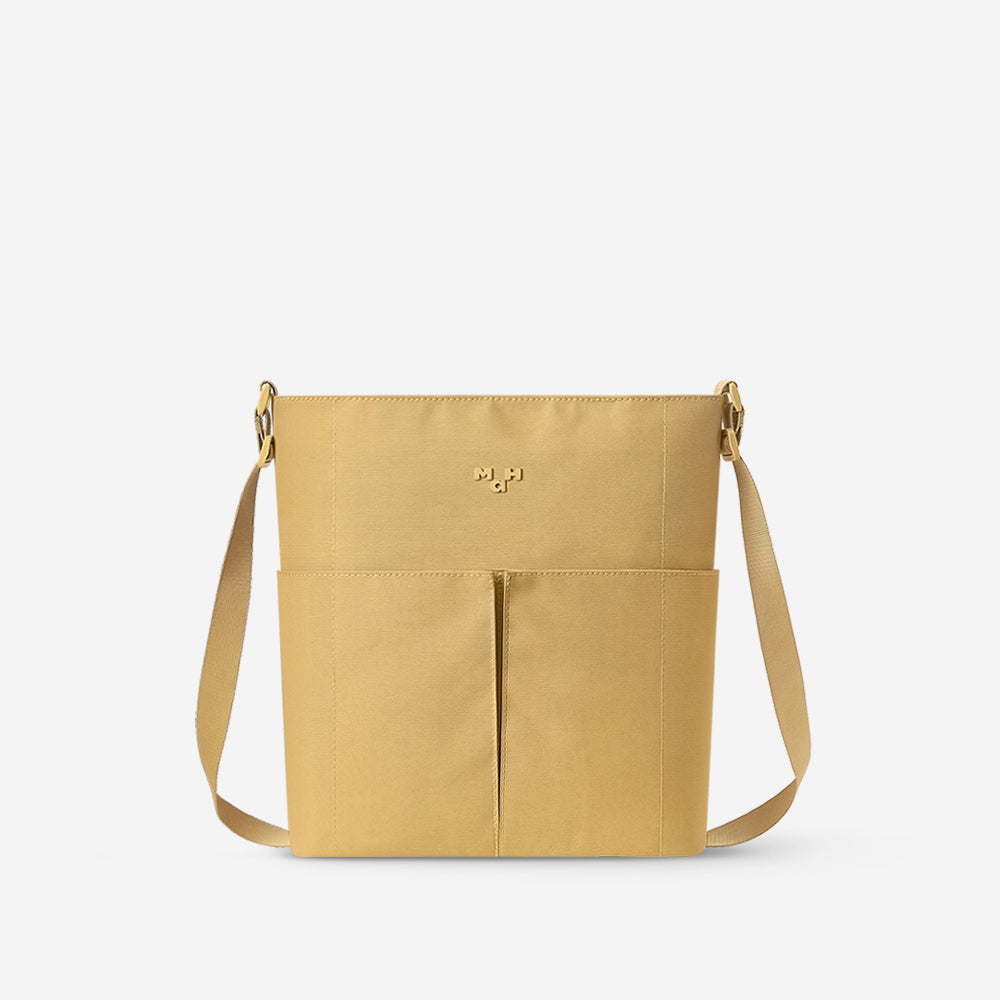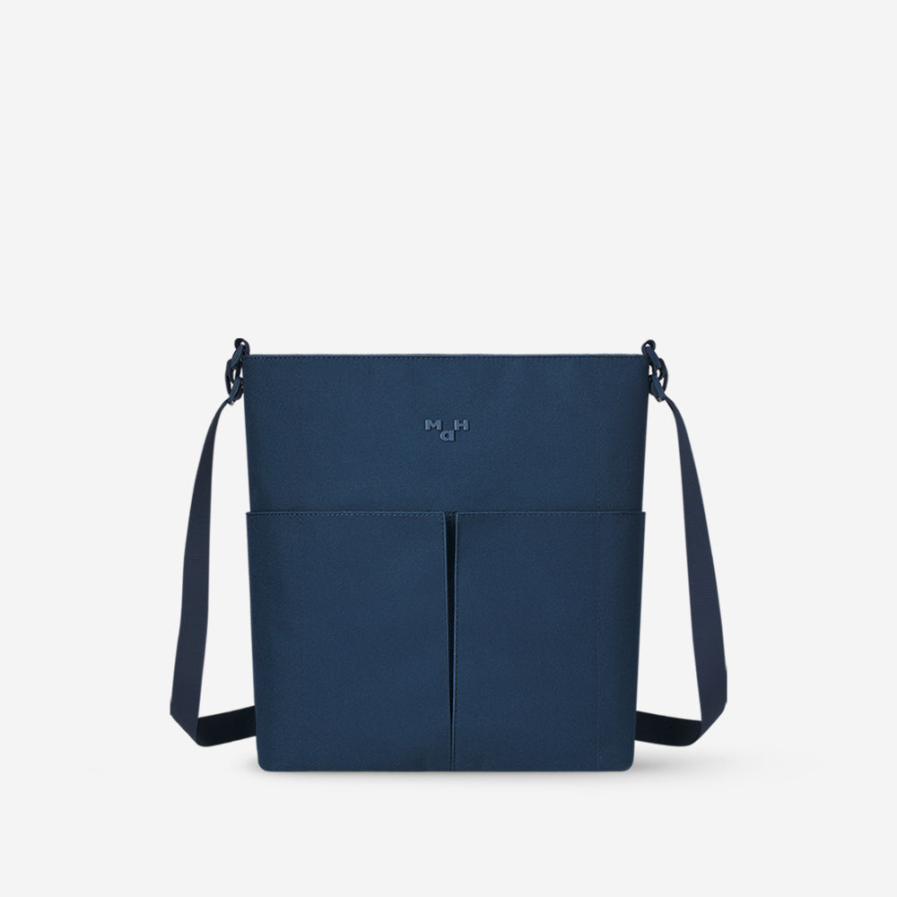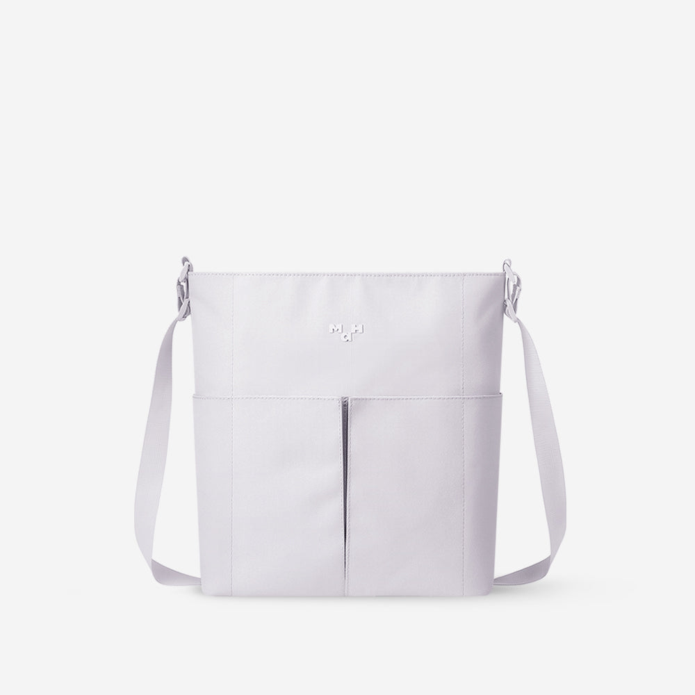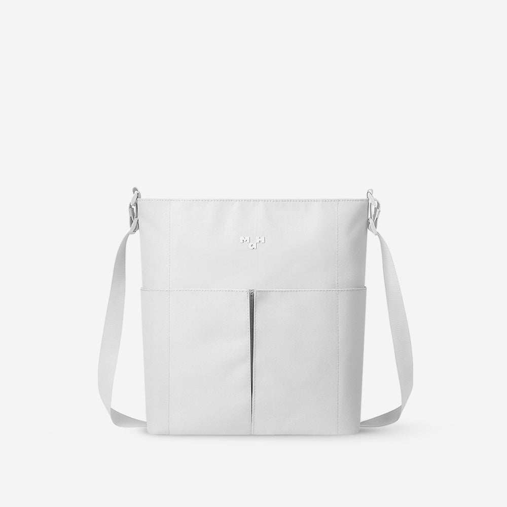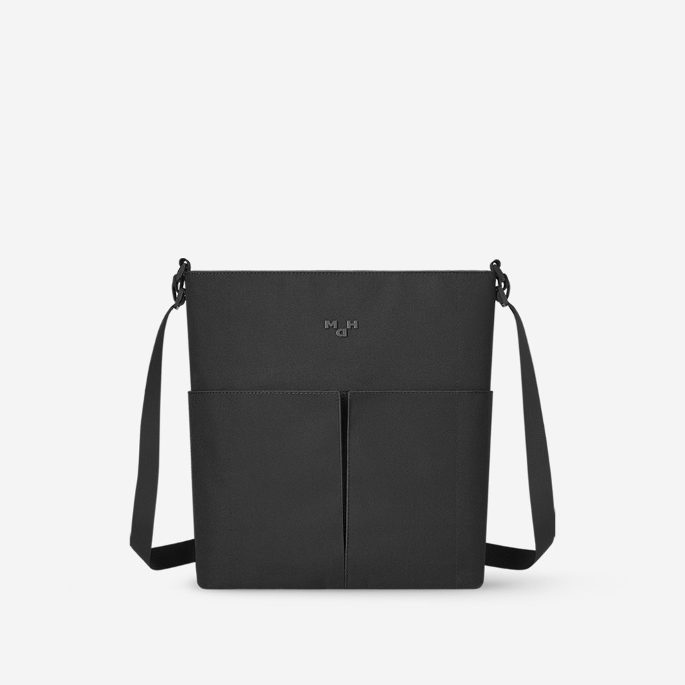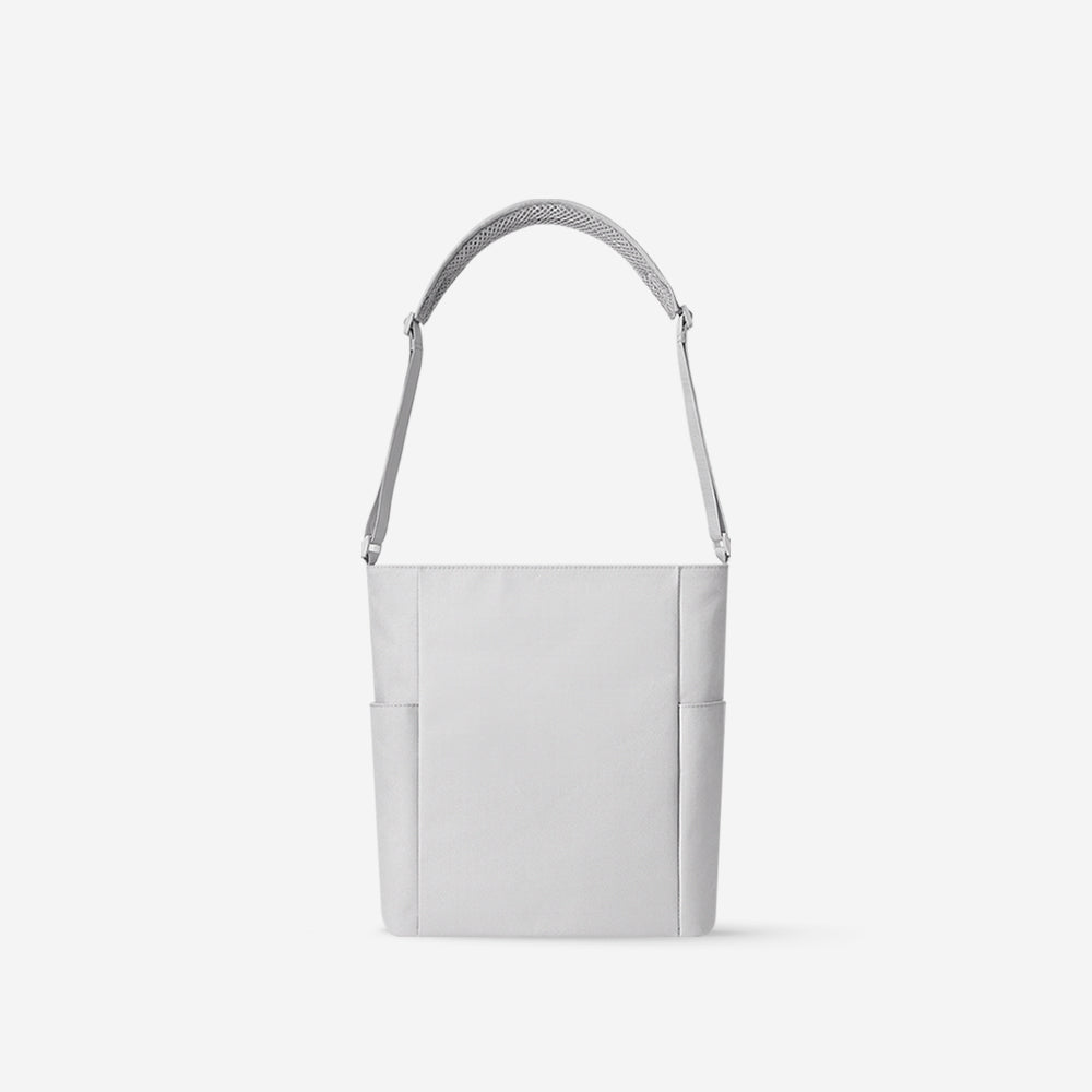 〈Line Cross〉は、ミニマルな美しさと使いやすさを両立したショルダーバッグ。コンパクトな見た目ながら、約9Lの容量を備え、日常使いに十分な収納力を発揮します。 メインコンパートメントは12.9インチのタブレットにも対応し、必要なアイテムをすっきりと整理可能。フロントにはマグネット式ポケットを2つ配置し、スマートフォンや小物をすぐに取り出せます。 通勤や日常の外出に最適な、シンプルでモダンなデザインのショルダーバッグです。