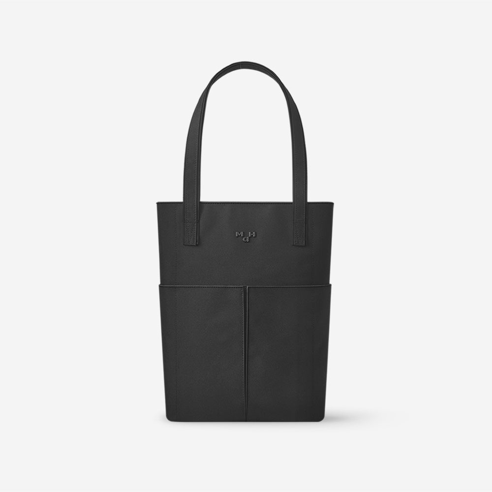 〈〈Line Tote〉は、シンプルで洗練されたデザインが魅力のトートバッグ。約7Lの容量を備え、14インチの薄型ノートパソコンを収納可能です。 メインコンパートメントには仕切りポケットを配置し、書類や小物をすっきり整理。フロントには2つのマグネットポケットを備え、頻繁に使うアイテムにもすぐアクセスできます。通勤やカフェワークなど、日常のさまざまなシーンで活躍するミニマルデザインのトートバッグです。