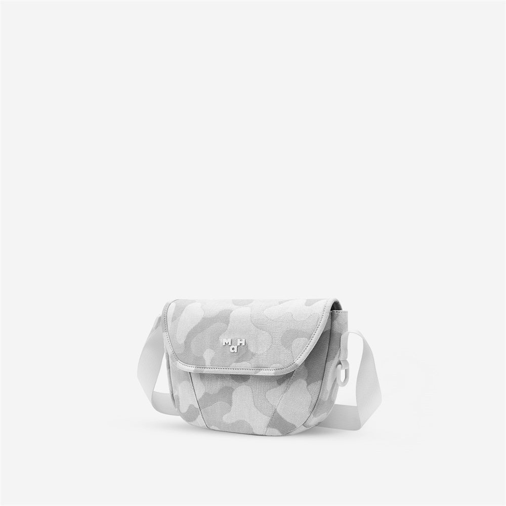軽やかな印象を与えるミニマルなクロスボディーバッグ。コロッとした丸みを帯びたフォルムとMaHらしい幾何学的なデザインを組み合わせました。フラップトップは、マグネットを用いた開閉システムを採用し、片手でもスムーズにアクセスできます。小ぶりながら、メインコンパートメントの仕切りや背面ポケットを備え、スマートフォンや財布、ワイヤレスイヤホンなどの普段持ち歩くアイテムが整理して収納できます。可能な限り無駄を削いだミニマルなデザインなので、街歩きなどのちょっとした外出のお供に持ち出しやすい小型のクロスボディーバッグです。