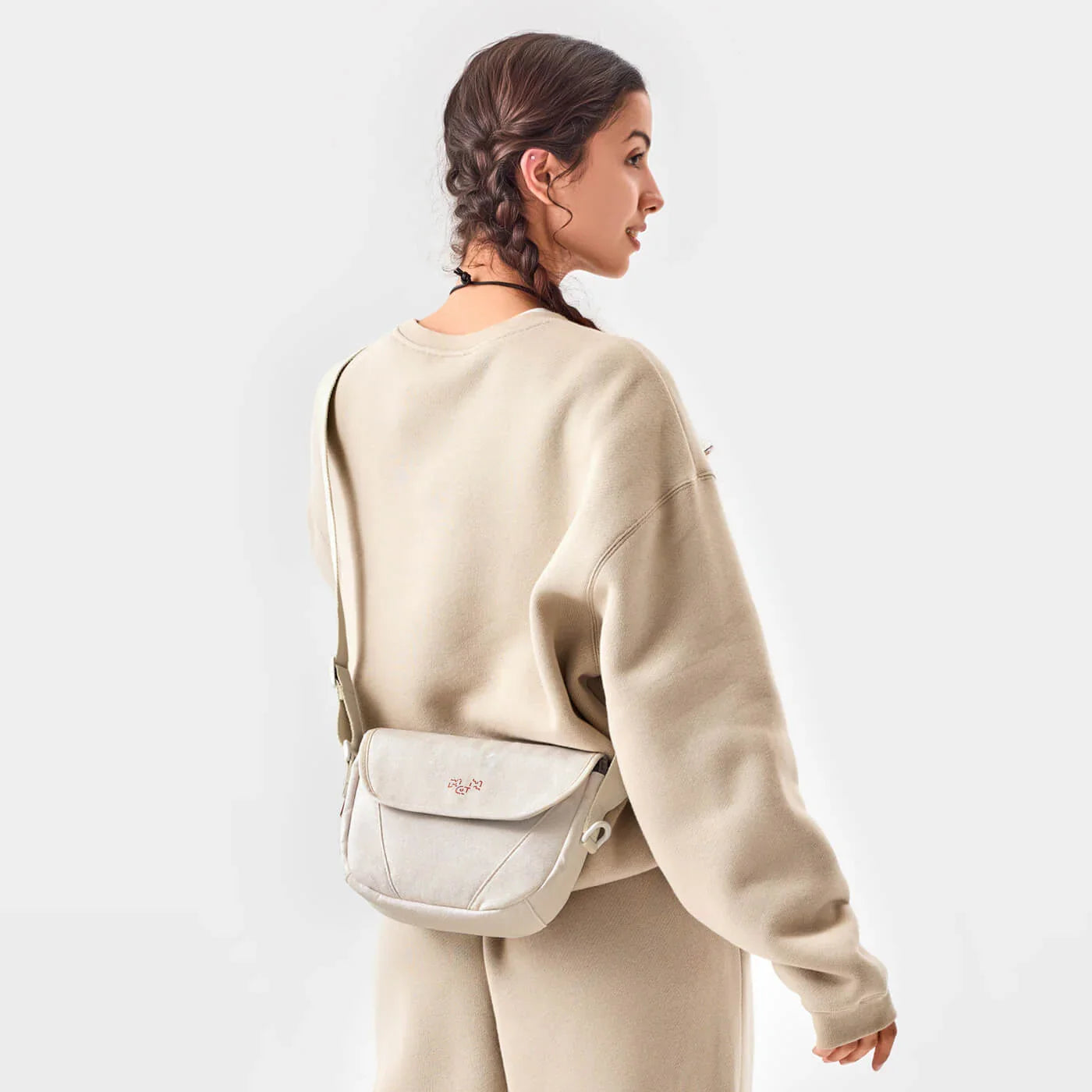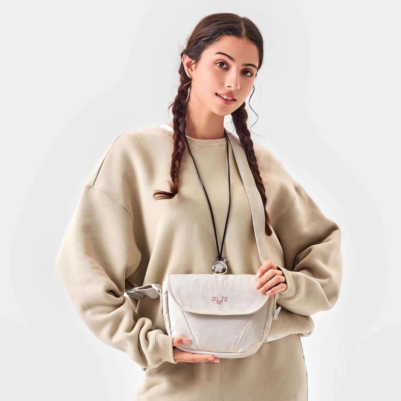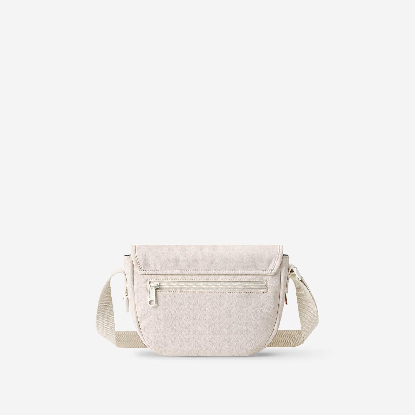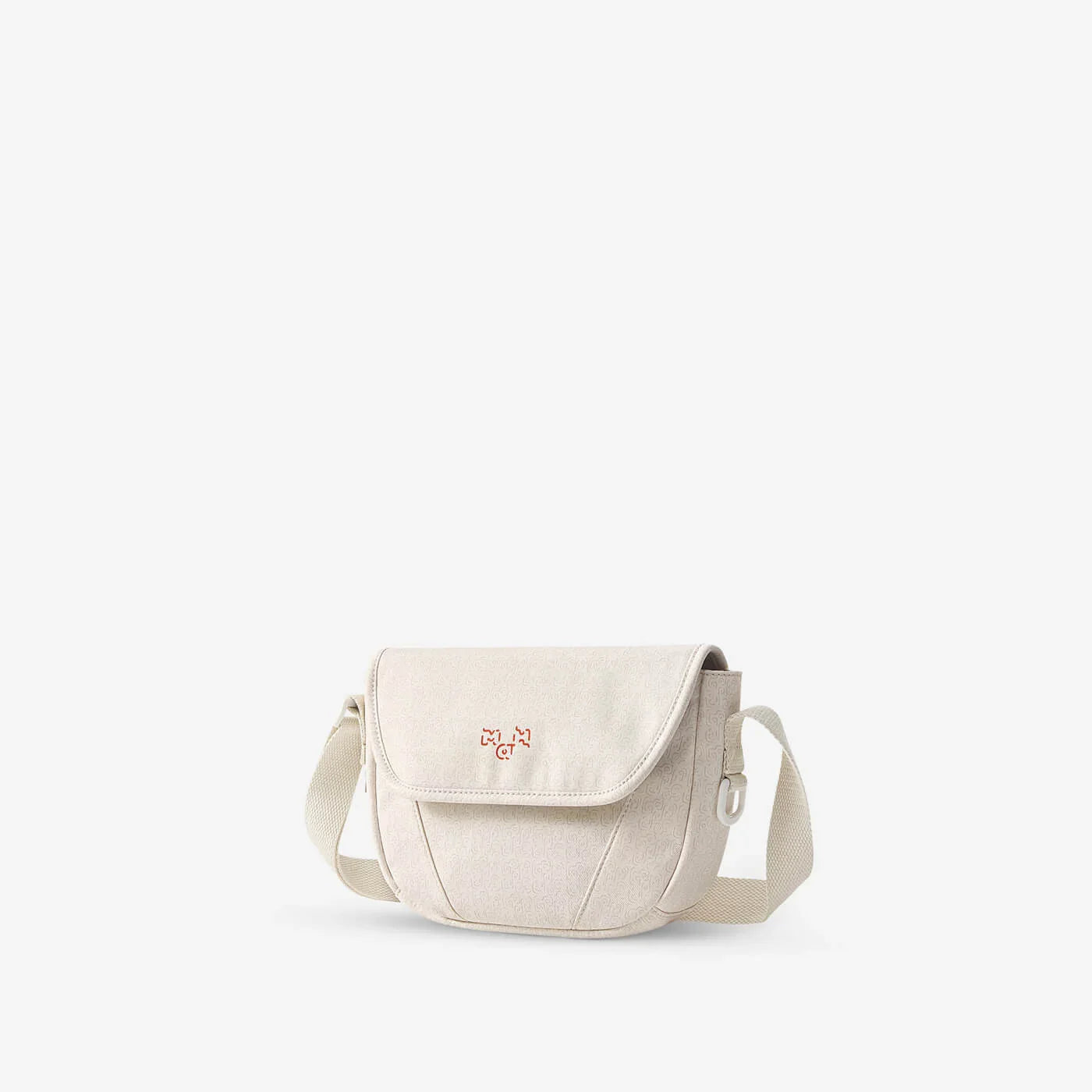 軽やかな印象を与えるミニマルなクロスボディーバッグ。コロッとした丸みを帯びたフォルムとMaHらしい幾何学的なデザインを組み合わせました。フラップトップは、マグネットを用いた開閉システムを採用し、片手でもスムーズにアクセスできます。小ぶりながら、メインコンパートメントの仕切りや背面ポケットを備え、スマートフォンや財布、ワイヤレスイヤホンなどの普段持ち歩くアイテムが整理して収納できます。可能な限り無駄を削いだミニマルなデザインなので、街歩きなどのちょっとした外出のお供に持ち出しやすい小型のクロスボディーバッグです。