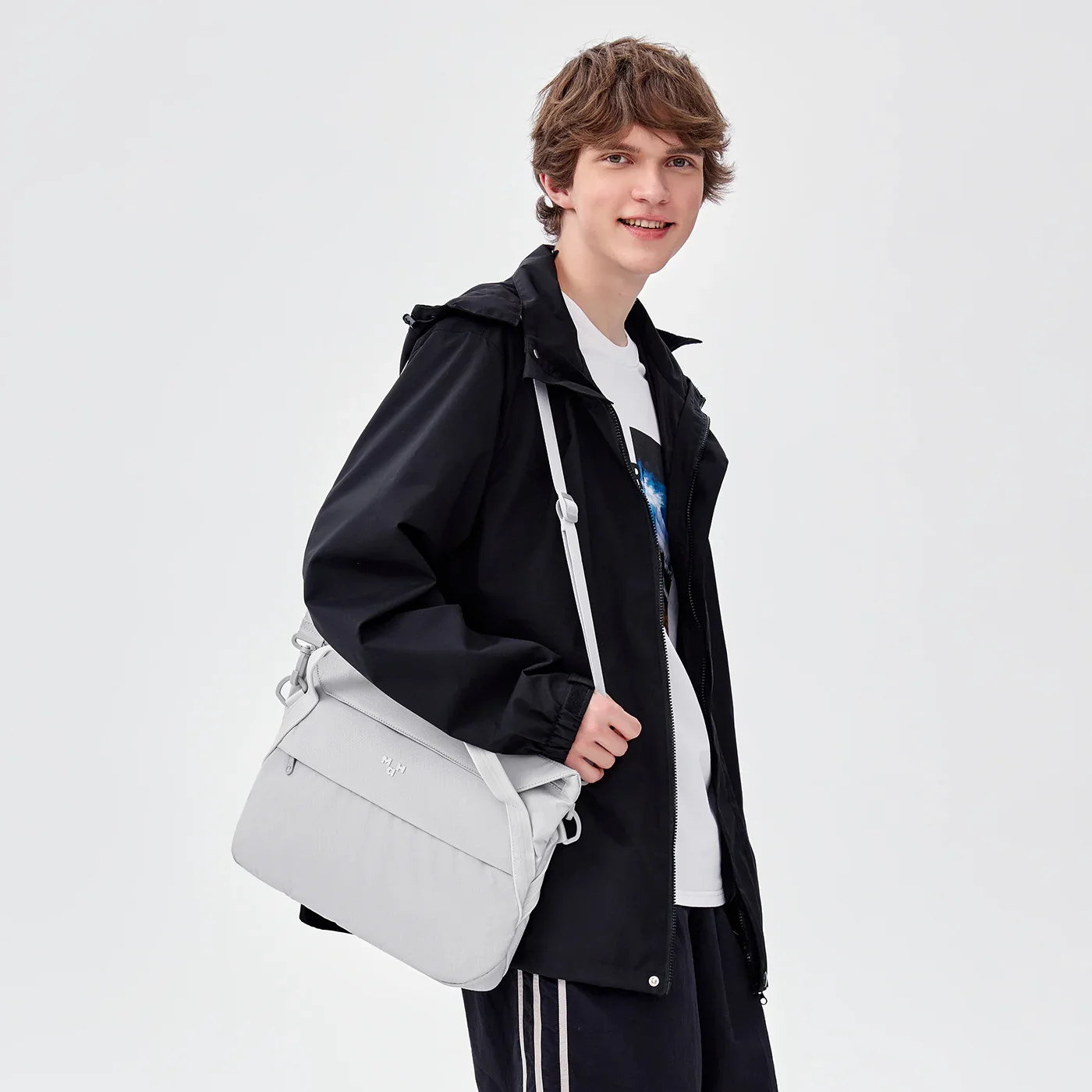 〈Airy〉シリーズらしい軽快なデザインのクロスボディーバッグ。わずか6Lの小さな容量にその日に必要なものをしっかり収納できます。ブランド名の頭文字「A」のフォルムをモチーフにしたデザインは、シャープなラインと広い開口部が使いやすさを両立しています。メインコンパートメントには整理しやすい仕切りが付き、スマートフォンや財布、鍵、サングラスなどの小物類が効率的に収納が可能。頻繁に使うものをアクセスしやすいフロントパネルのポケットや、バックパネルの隠しポケットを活用すれば、荷物を多く入れてもすっきりとした見た目が保てます。徒歩での通勤や通学から、街歩き、休日のちょっとした外出まで幅広く活躍してくれるでしょう。